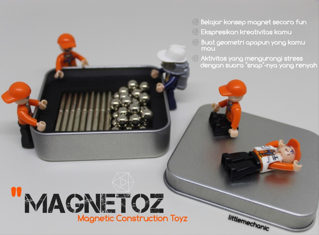 Saenggeus bahan-bahanna kakumpul jeung diberesan rapih, management ngajelaskeun ka tim Garasi, yen ieu stik semprani jeun bola beusi teh rek dipake jang coco’oan edukasi sains anu ngarana Magnetoz, Magnetic Construction Toyz. Ku ieu Magnetoz, ternyata bisa dijieun macem-macem bentuk geometri naon wae anu dikahayang ku urang. Sakaligus urang bisa bari diajar konsep sains nu aya dina semprani make cara anu pikaresepeun.