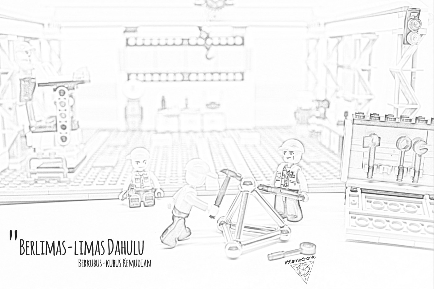 In Bahasa Indonesia, there is a famous proverb which said “Berakit-rakit ke hulu, berenang-renang ke tepian. Bersakit-sakit dahulu, bersenang-senang kemudian.” , which basically means “No pain, no gain”. But the literal meaning of “Bersakit-sakit dahulu, bersenang-senang kemudian“, is “Having pain first, having fun next”. So, again, out of his desperate humor, the writer use the pattern of this proverb, and use it in this topic. Our sincere apology for this continuous presence of desperate humor, haha. Anyway, let’s continue to follow the little mechanic’s activity. What exactly the little mechanics do with all the materials?