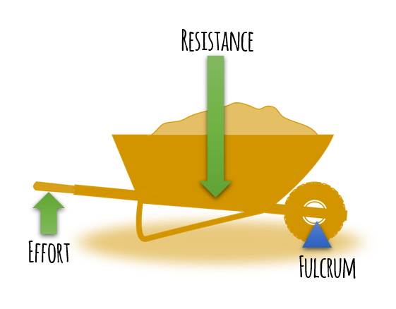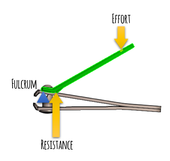 Let’s observe the location of “Effort”, “Resistance” and fulcrum in the upper component:
