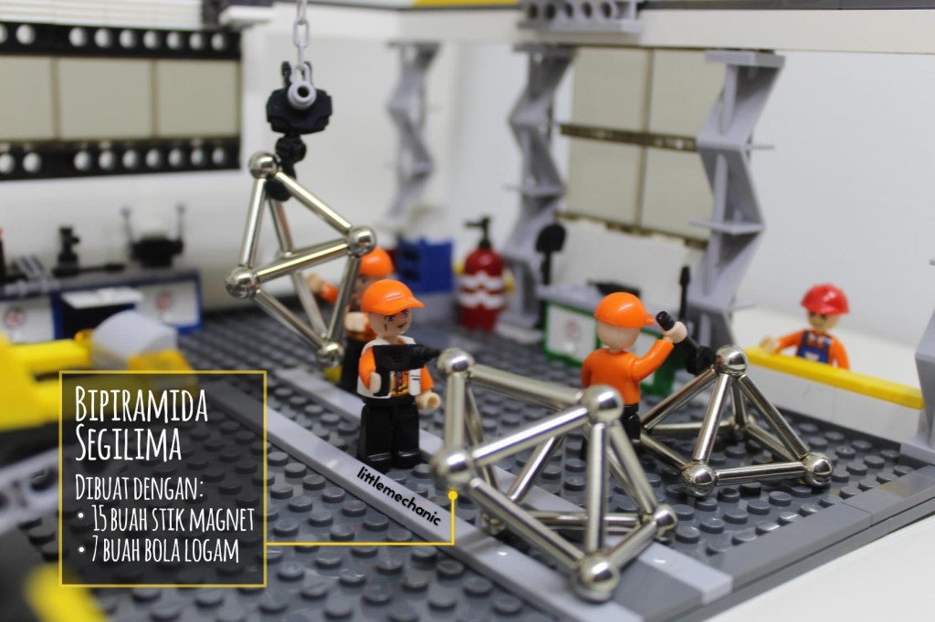 Di episode ini, para mekanik-mekanik kecil bekerja bakti membuat berbagai bentuk geometri 3 dimensi sesuai instruksi dari management. Dan makin ke sini, bentuknya makin kompleks guys. Dari mulai Bipiramida Segitiga (Triangular Bipyramid), Limas Segiempat (Square Pyramid), sampai Bipiramida Segilima (Pentagonal Bipyramid). Berbagai bangun ruang, bisa dibikin gampang banget pake Magnetoz ini.